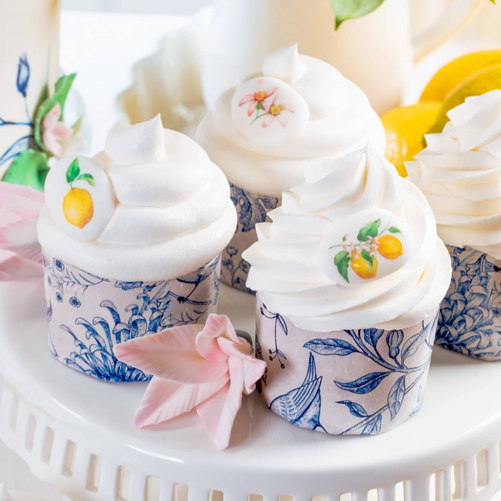 Идея декорирования "Кексы с лимонами" представляет собой кексы, испеченные в бумажных формах "Фарфор", и украшенные сахарными медальонами в форме лимонов. Такой декор придает кексам особый вид и тематическую атмосферу. Кексы с лимонами в формах "Фарфор" и медальонами "Лимоны" являются привлекательным и вкусным дополнением к столу, создавая приятное визуальное разнообразие и добавляя свежесть цитрусового вкуса.