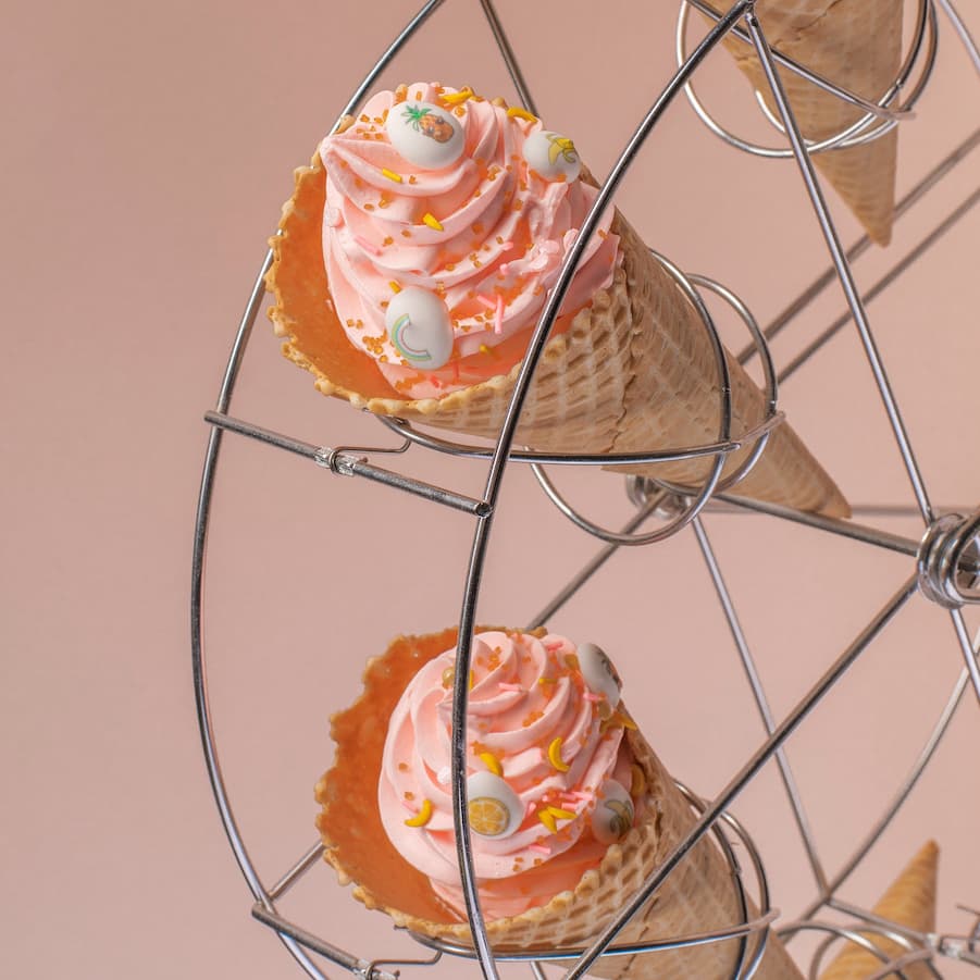 Идея декорирования "Летние рожки" представляет собой рожки с мороженым внутри. Они украшены сахарными мини-медальонами с тематикой лета и различными посыпками от Top Decor. На изображении видно, что рожки имеют хрустящую текстуру, а их мороженое выглядит освежающе и аппетитно. Сахарные мини-медальоны с тематикой лета становятся декоративными элементами, добавляющими визуальное восприятие сезона и атмосферы летних радостей. Различные посыпки от Top Decor придают рожкам дополнительный цветовой акцент и текстурное разнообразие. Идея декорирования "Летние рожки" отлично подходит для создания атмосферы летнего праздника и наслаждения освежающими вкусами мороженого.