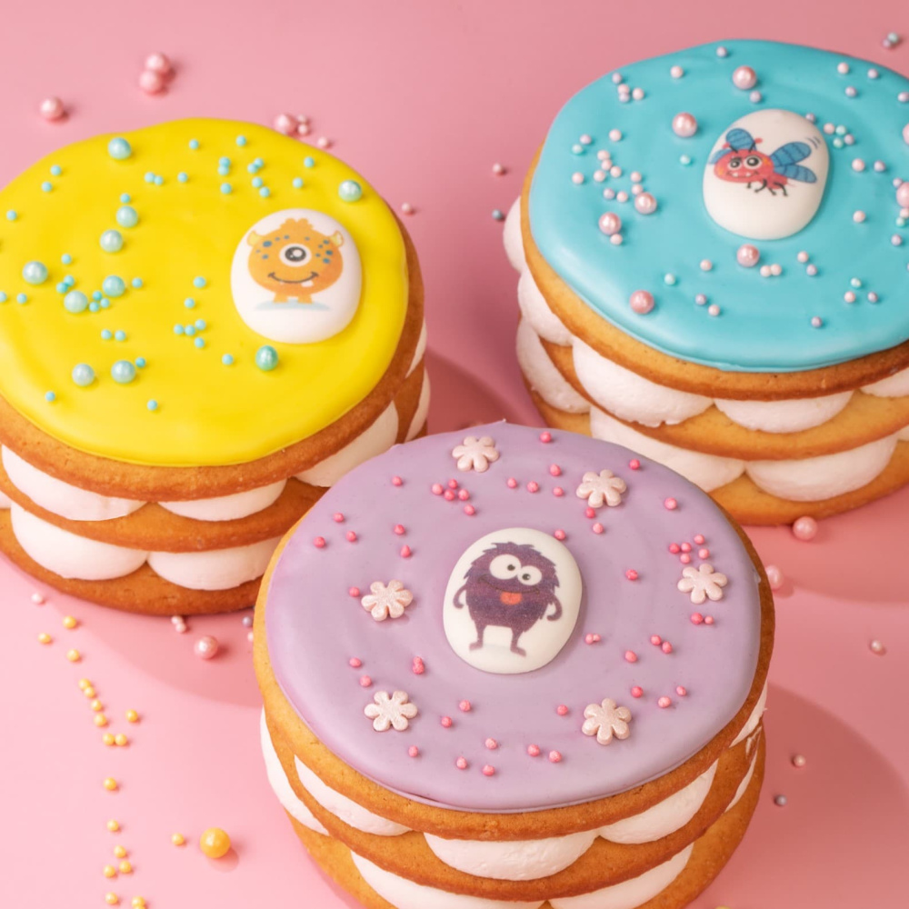 Идея декорирования "Мини-медовик" представляет собой небольшие медовики, покрытые сладкой помадкой айсинг в цветах летней коллекции пищевых красителей Top Decor. Мини-медовики дополнительно украшены сахарными медальонами в виде забавных монстров, создавая веселую и игривую атмосферу. Эта идея декорирования придает мини-медовикам привлекательный внешний вид и вкус, подходящий для различных случаев и событий.