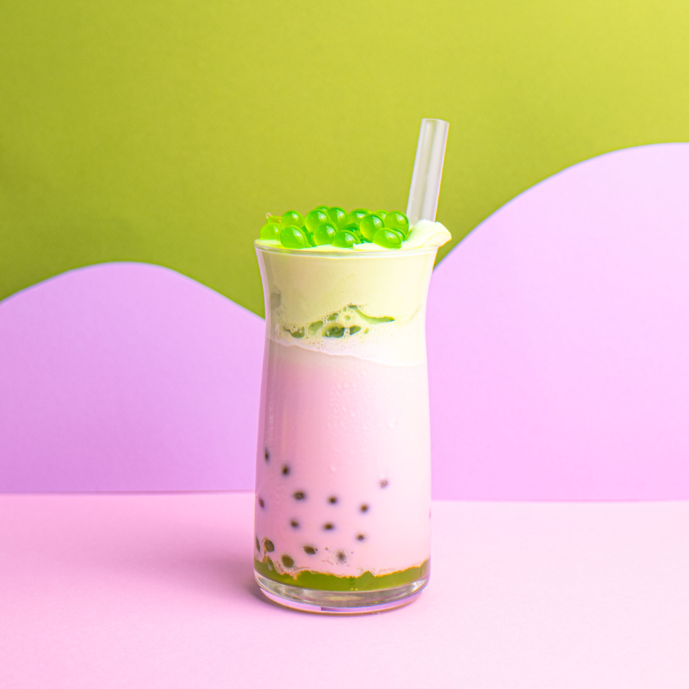 Этот необычный напиток удивит вас своим насыщенным вкусом. Лопающиеся яблочные шарики придадут напитку нотки свежести и сладости, создавая уникальный контраст с молочным чаем.