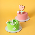 Десерты покрыты бархатным велюром в нежных розовых и зелёных оттенках, выполненным с использованием жирорастворимых красителей Top Decor, что обеспечивает насыщенный цвет и равномерное покрытие. Декор дополнен изящными белыми вафельными бабочками, пряником в форме тюльпана, изготовленным с помощью металлической вырубки Top Decor, а также жемчужным миксом белого цвета, который придаёт композиции лёгкое сияние и завершённый праздничный образ.