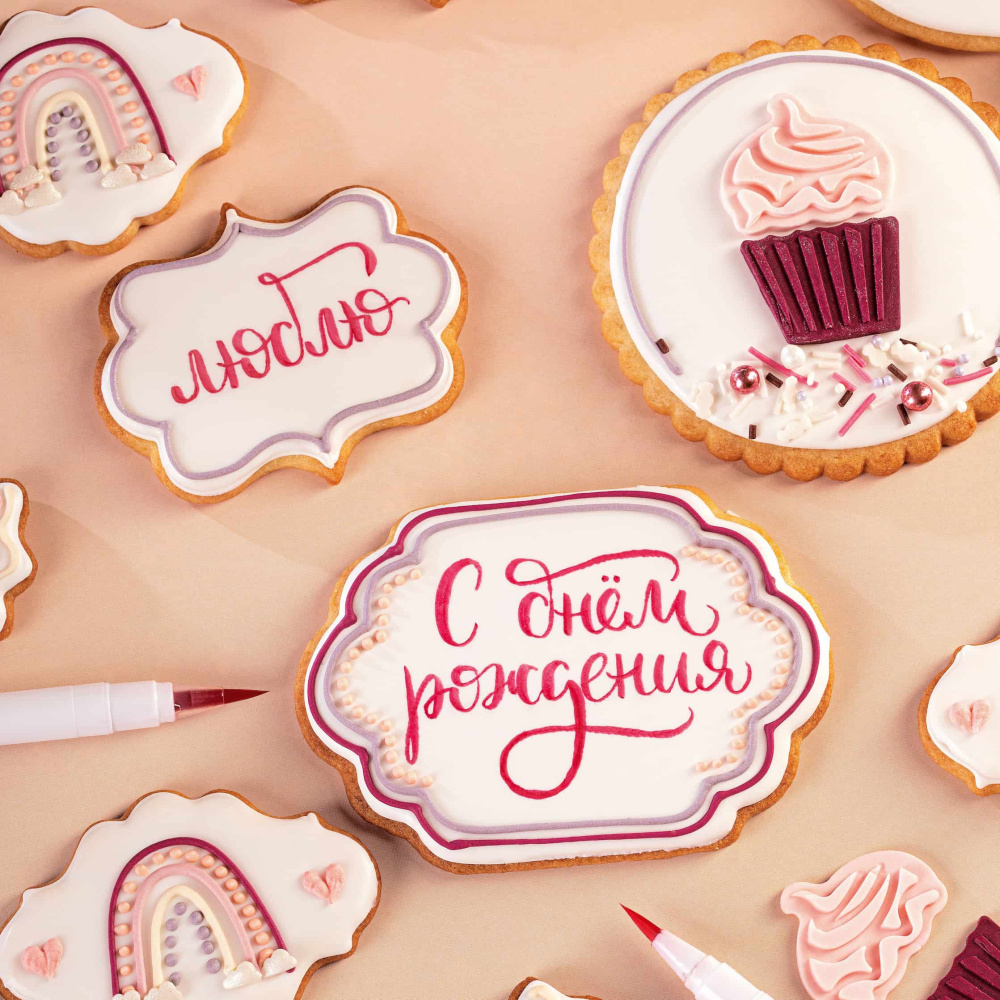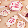 Сверху каждого пряника нанесены надписи "С днем рождения" и "Тебе годик" при помощи пищевых фломастеров Top Decor. Эти надписи добавляют праздничности и позволяют выразить поздравления малышу в особенный день его рождения.