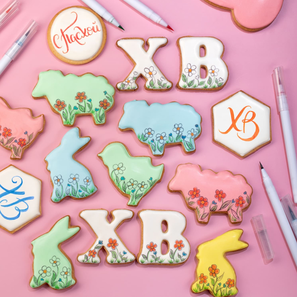 Идея "Пряники и пасхальные символы" представляет собой набор пряников в форме кроликов, цыплят и букв ХВ, украшенных рисунками цветов, выполненными пищевыми фломастерами Top Decor. Каждый пряник покрыт айсингом, окрашенным уникальными красителями компании. Такой набор прекрасно подойдет для украшения пасхальной корзины, праздничного стола или для дарения близким и друзьям в качестве подарка. Наслаждайтесь вкусом пряников и пасхальной атмосферой!
