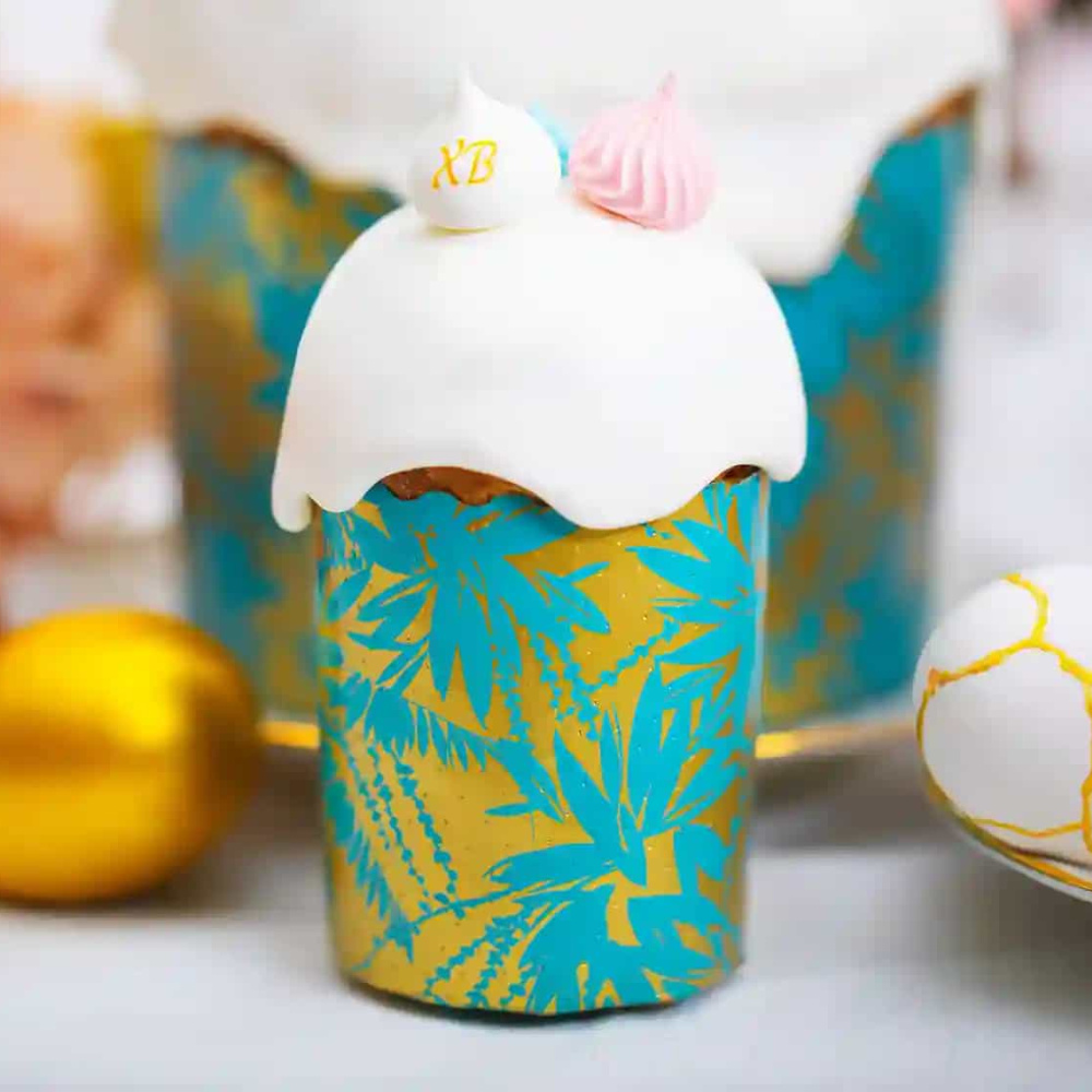Сверху кулич украшен гладкими сахарными фигурками безе. Этот декор создает уникальный образ, который придется по вкусу как детям, так и взрослым.