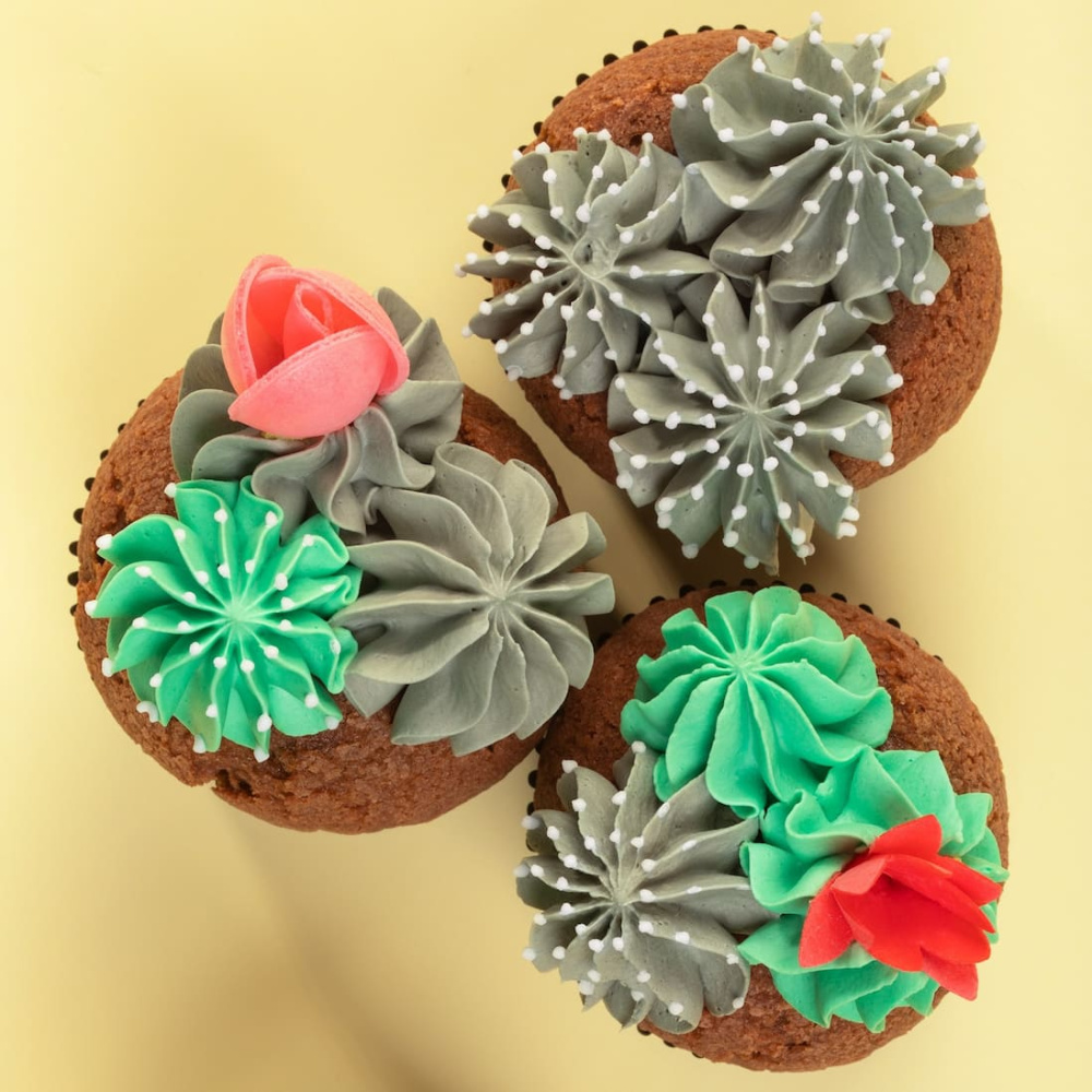 Идея декорирования "Сладкие кактусы" представляет собой кексы, украшенные кремовыми кактусами и вафельными цветами. Кексы воплощают в себе формы и текстуры кактусов, создавая визуальную иллюзию. Кремовые кактусы являются центральным элементом декора, добавляя объем и детали к кексам. Вафельные цветы дополняют декор и придают ему изящность и эстетическое очарование. Эта идея декорирования придает кексам уникальный вид и привлекает внимание своей необычностью. "Сладкие кактусы" будут прекрасным угощением на различных событиях и праздниках, порадуя гостей своим оригинальным и изысканным дизайном.