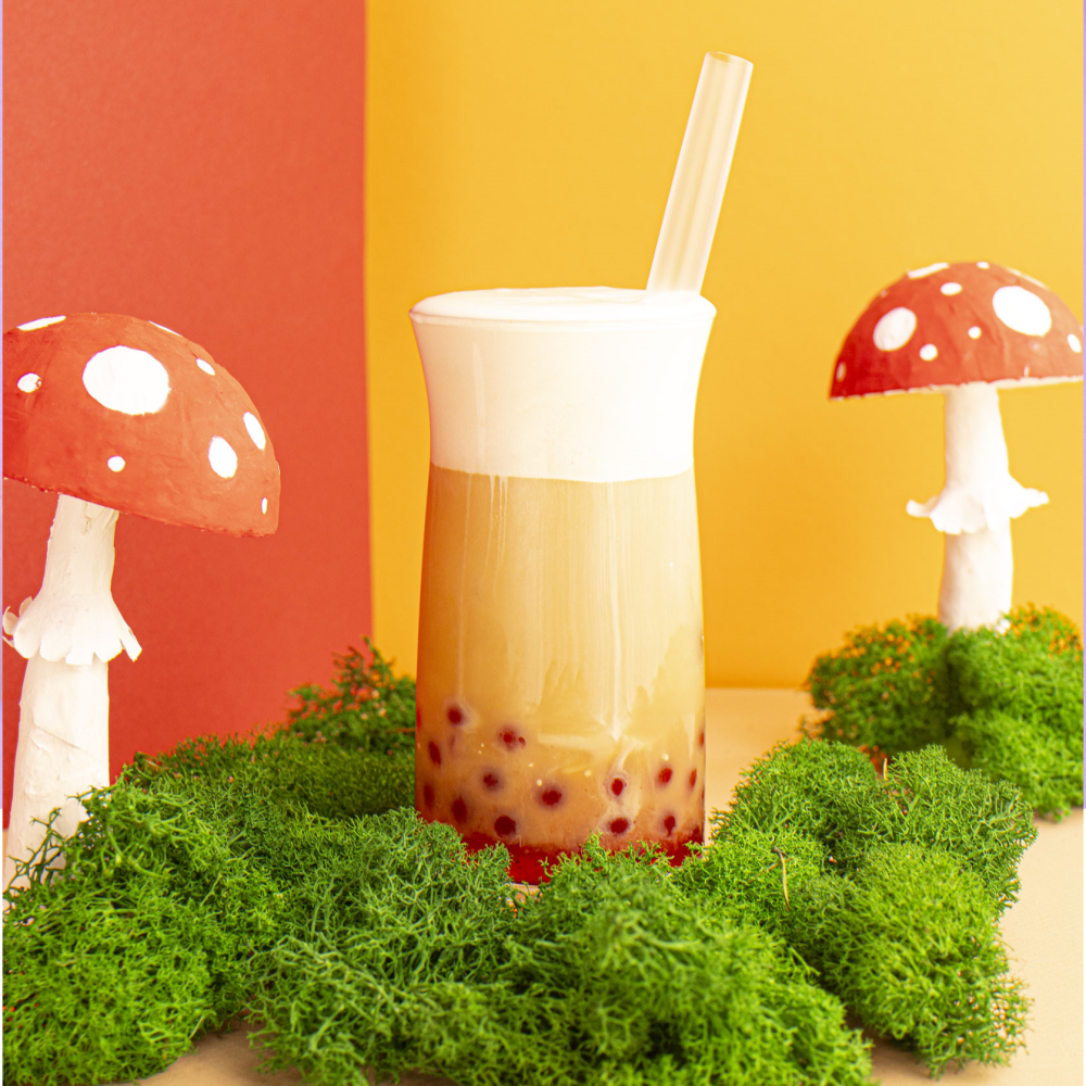 Оригинальная идея согревающего осеннего напитка. Сливочный кофе с сырной пенкой и вишневыми Джус Бабл.