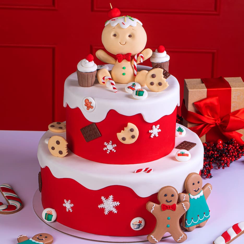 Идея декорирования "Торт к Рождеству" представляет собой торт, выполненный в оттенках зимней коллекции Top Decor, специально для празднования Рождества. На изображении видно, что торт украшен сахарными медальонами "Рождество" и фигурками из сахарной мастики Top Decor.