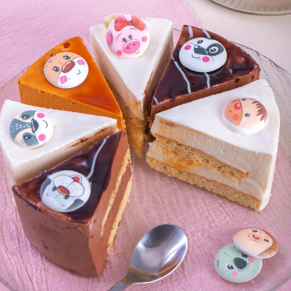Идея декорирования "Торт со зверятами" представляет собой уникальный и забавный торт, который состоит из различных кусков тортов, собранных вместе. На изображении видно, что торт украшен сахарными медальонами с изображением зверят. Эти медальоны придают торту игривый и дружелюбный вид, создавая атмосферу веселья и радости. Они изображают разных зверят, таких как львенок, собачка, зайчик и другие, добавляя нотку природы и животного мира к декору торта. Идея декорирования "Торт со зверятами" подходит для празднования детских и дружеских вечеринок, дня рождения или любого другого события, когда хочется добавить веселья и разнообразия к сладкому угощению.
