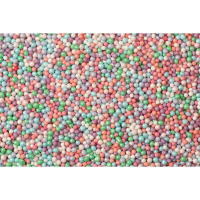 Десерт украшен сахарной помадкой различных цветов, что придает ему привлекательный внешний вид и нежный ванильный вкус. Также вафли дополняют сочный летний микс посыпок “Лето в парке”, мягкие посыпки “Помпоны” и разноцветный микс посыпок в виде вермишели.