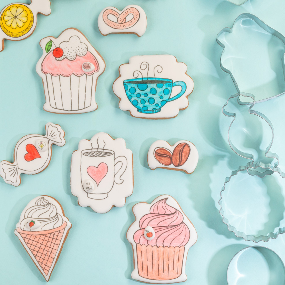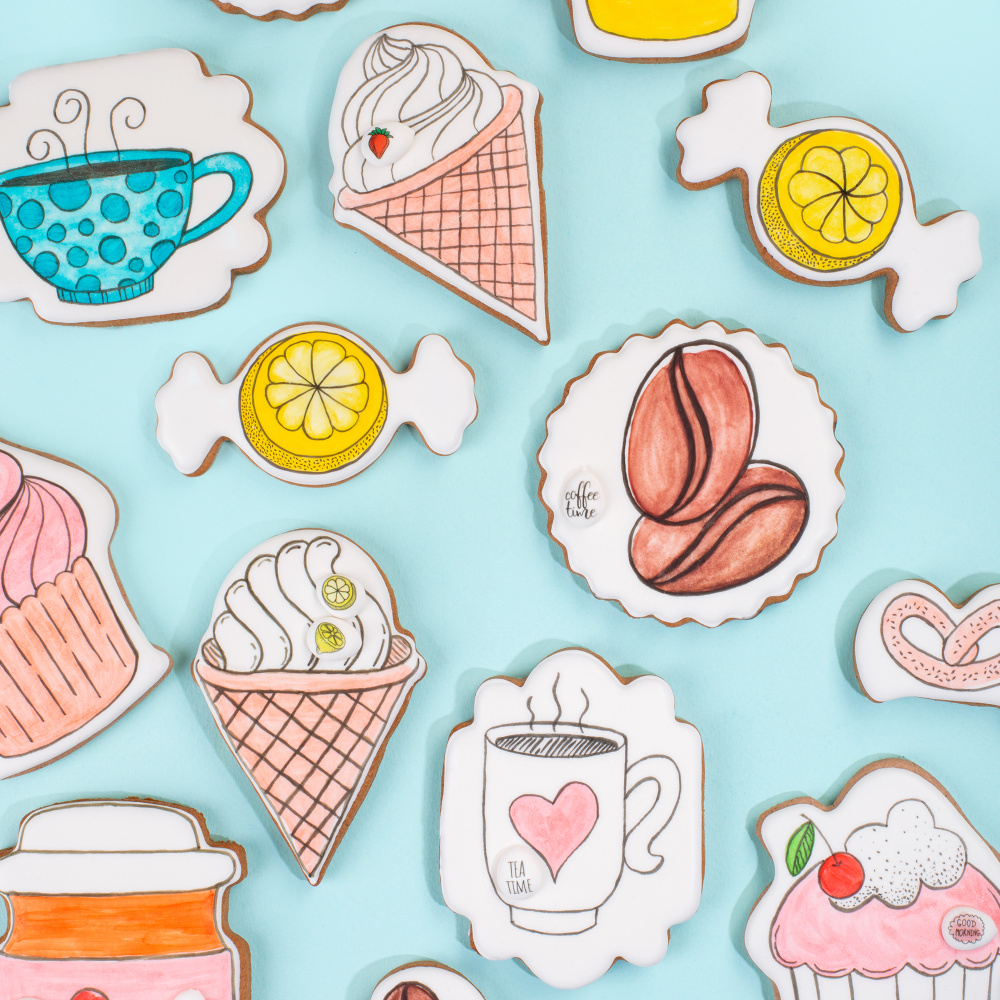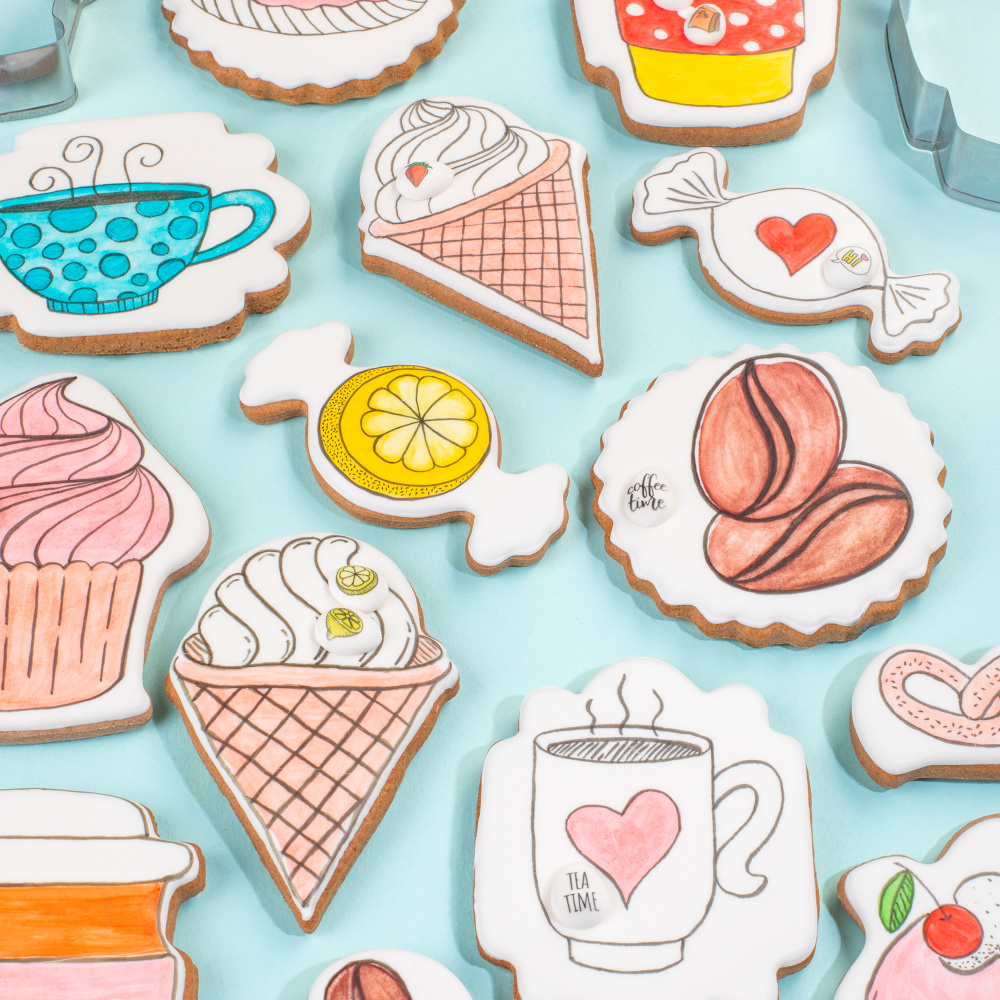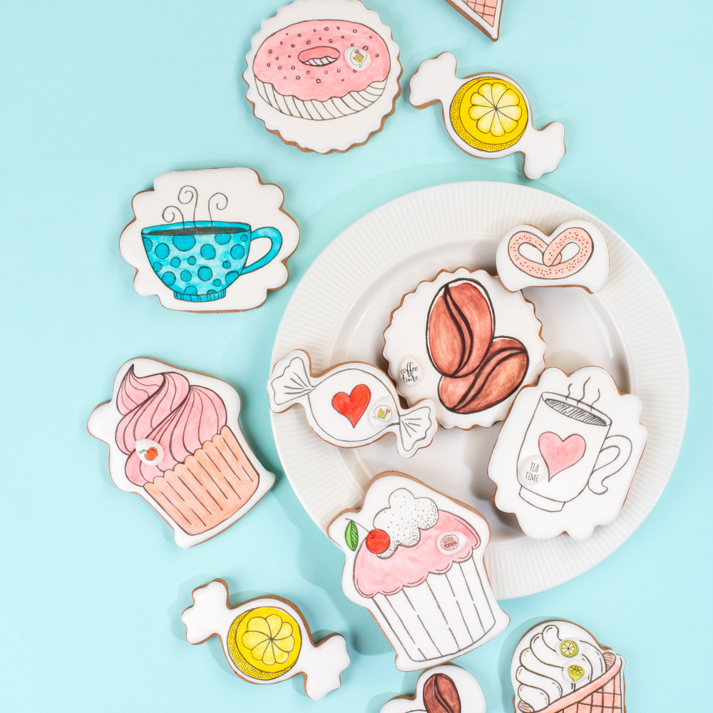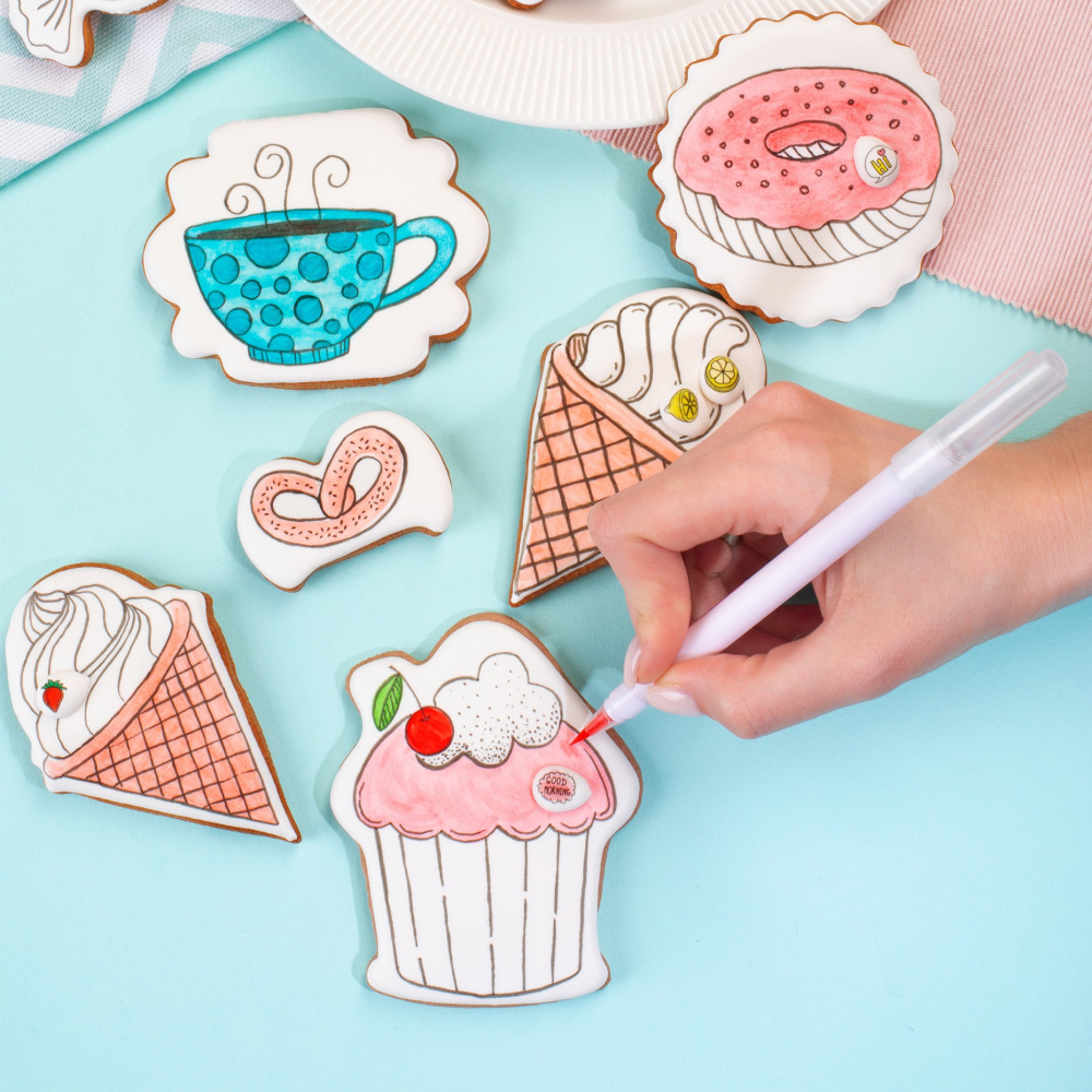 На каждом прянике изображен милый рисунок, нанесенный с помощью пищевых фломастеров Top Decor. Разнообразие оттенков дает возможность воплотить в жизнь самые креативные идеи на ваших пряниках, а уникальный наконечник в виде кисти позволит рисовать как тонкими линиями, так и осуществлять сплошную заливку элементов. Все пряники покрыты айсингом.