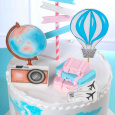 Для тех, кто ищет идеи для торта на тему путешествий, наша компания Top Decor предлагает идею декорирования "Воздушные шары". На изображении к идее вы можете увидеть торт в белых тонах, украшенный разнообразными элементами из мастики, создающими атмосферу путешествия. На верхушке торта мы использовали декор в виде воздушного шара, который может стать не только интересным элементом декора, но и символом приключений. Кроме того, мы добавили глобус, фотоаппарат и другие предметы, которые будут прекрасным дополнением к тематике путешествий.