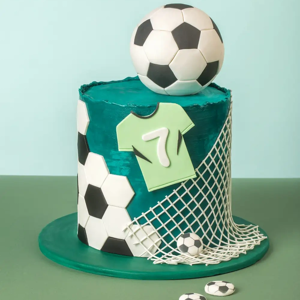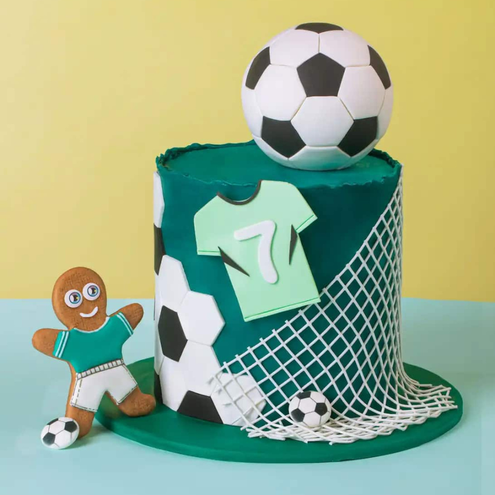 Матч уже близко, пора готовить приз! Оригинальный торт для любителей футбола в сопровождении пряничного футболиста и сахарного медальона "Футбольный мяч". Для приготовления торта были использованы уникальные красители Top Decor, которые идеально передают весеннее настроение и атмосферу матча. Важной деталью изделия является сахарный медальон "Футбольный мяч". Этот элемент декора мы также использовали в идее "Пряники футболисты"