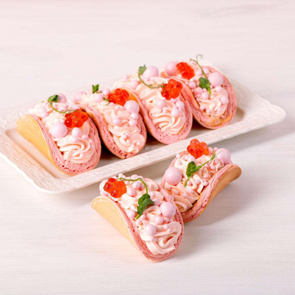 Декор и цветовая палитра подчёркивают стиль современной Масленицы, сочетая традиционный десерт с актуальной эстетикой. Изящный и трендовый десерт, который идеально подойдёт для витрины, праздничных сетов и сезонных коллекций, наполняя подачу свежестью, нежностью и атмосферой весны.