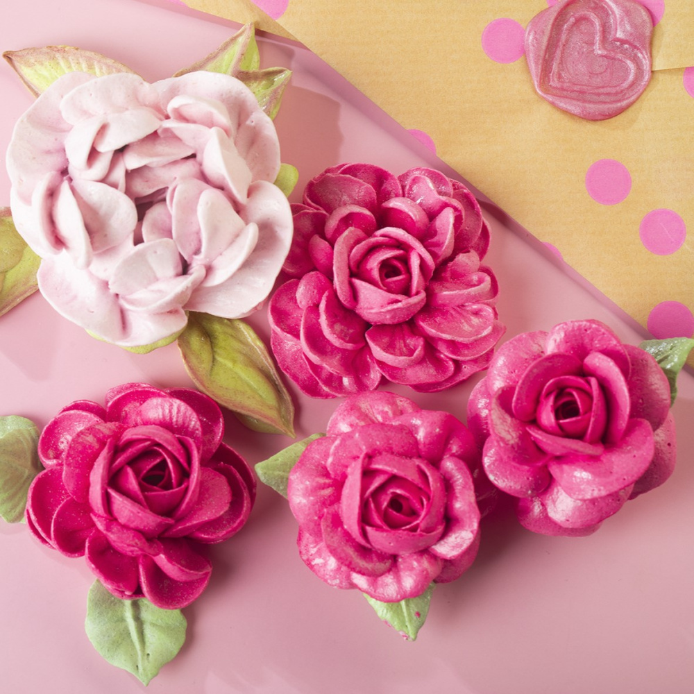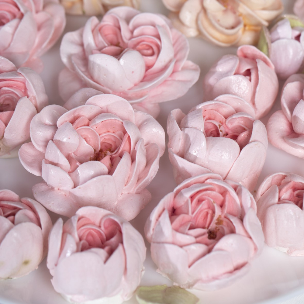 Для создания пышных бутонов цветов и листьев Top Decor предлагает большое разнообразие кондитерских насадок: насадка “Роза 127”, насадка “Листик 114”, насадка “Листик 65”, насадка “яблоневый цвет 161. Для придания природного оттенка зефирным цветам в этой идее декорирования использовались гелевые водорастворимые красители: “королевская синяя”, “фуксия”, “арбузная”, “лаймовая”, “апельсиновая”.